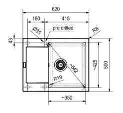 Découpe : 600 × 480 mm (rayon 20 mm)