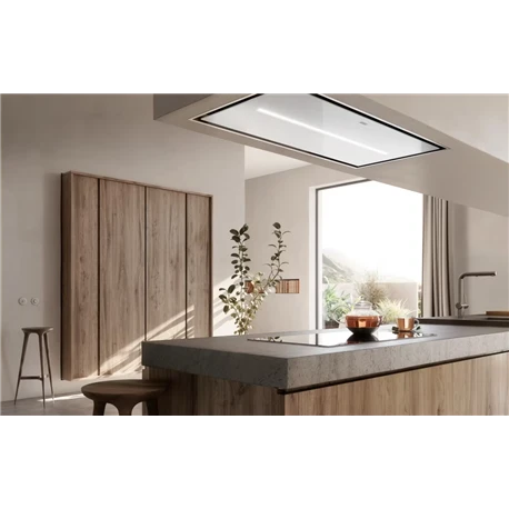 Hotte de plafond Mythos AIrHub de Franke, ref 223057, coloris blanc et de largeur 120 cm. Purificateur de l’air par lampes UVC avec 3 modes : manuel, jour et nuit. 3 vitesses + 2 intensives. Fonction 24 h. Arrêt programmé de 30 min. Alarmes saturation des filtres. Eclairage Barre LED 12 W / 4000 K. Commande à distance (télécommande fournie). Bluetooth / Wifi. Code EAN: 7612986223057, code FUN: 350.0679.885
