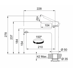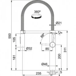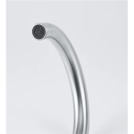 Mitigeur cuisine à bec Leda Neo tout inox de Franke, ref 728805. Rotation du bec sur 180°. Embase ø 45 mm. Perçage ø 35 mm. Levier de commande : 0°/ 90°. Débit 12,8 L/min (3 bars). Cartouche ø 35 mm. Ecoulement laminaire. Système de fixation avec corps fileté. Code EAN: 7612985728805, code FUN: 115.0590.046