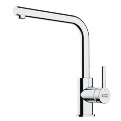 Mitigeur cuisine Lina L de Franke à bec, ref 294590, coloris chrome. Rotation du bec sur 360°. Embase ø 54 mm. Perçage ø 35 mm; Levier de commande 0° / 90°. Débit 9,8 L/min (3 bars). Code EAN: 7612986294590, code FUN: 115.0693.230