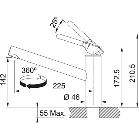 Mitigeur cuisine à bec Orbit 876476 chromé de Franke, Rotation du bec sur 360°. Embase ø 48 mm. Perçage ø 35 mm. Levier de commande 0°/90° . Débit 11,9 ltr / min. Cartouche ECO. Ecoulement laminaire. Butée de débit pour une réduction de la consommation d’eau pour les usages courants = 25% d’économie d’eau. Eau froide en position centrée : l’alimentation en eau chaude est conservée sur la gauche ce qui génère 5% d’économie d’énergie (pour la production d’eau chaude). Code EAN: 7612985876476. Code FUN: 115.0623.054.