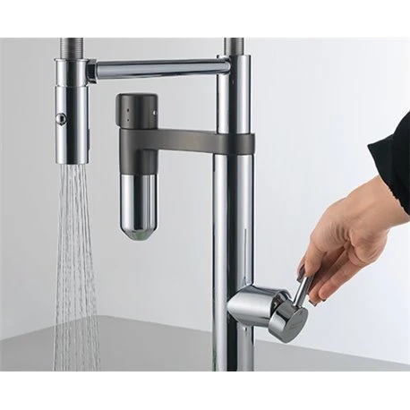 Mitigeur cuisine Vital Semi-pro chrome , douchette double jets 865586 Franke, 3 en 1 : levier eau chaude, eau froide et système de filtration dissocié. Circuit d’eau filtrée totalement indépendant. Rotation du bec sur 360°, débit 3,5 L/min. 2 cartouches de 500 L incluses, pile pour le timer incluse. Levier de commande 0/90°, hauteur 550 mm. Code FUN: 120.0621.230. Code EAN: 7612985865586