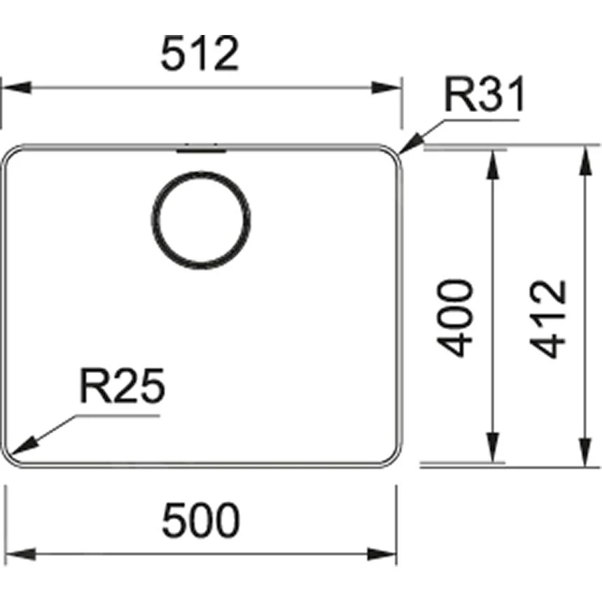 - rainures fraisées sur tout le contour de la découpe sur une profondeur de 1,5 à 2 mm (512,4 x 412,4 mm, R 31,2 mm)