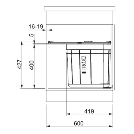 Poubelle cuisine Sorter solo 450 référence 160142 1 bac 40 Litres de Franke A fixer à l’intérieur du meuble, dimensions (HxlxL): 412 mmx427 mmx390 mm. 1 bacs : 40 Litres, Avec couvercle. Fixation de la tablette sur les 2 montants du meuble. Livré avec système de fixation. Couvercle avec filtre à charbon intégré. Ouverture automatique avec l’ouverture de la porte (triangle entraînant la poubelle). Fixation de la poubelle directement à l’intérieur du meuble (pas de poids sur la porte). Code EAN: 7612981160142. Code FUN: 121.0307.565.