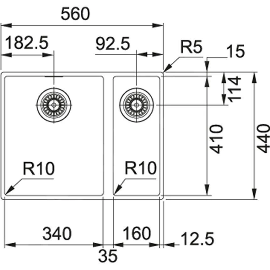 Évier de cuisine SID 160/ 2, sans égouttoir