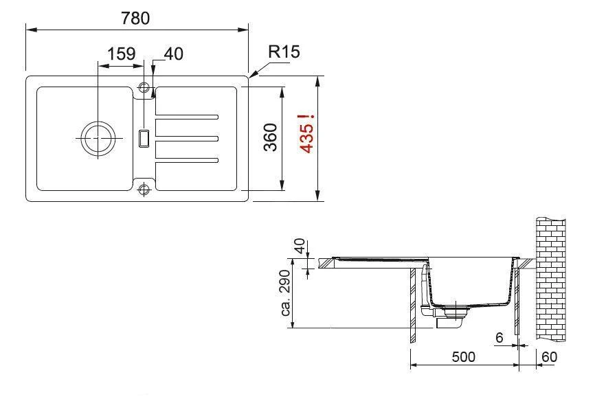 - évier réversible, l’égouttoir peut être placé à droite ou à gauche